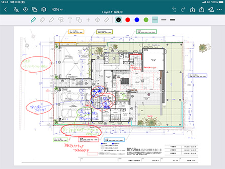小林:ほとんどのケースで打ち合わせの度に図面は更新されていて、紙での打ち合わせですと、意見交換の内容をその図面へ直接書き込んで修正を重ねていきます。
