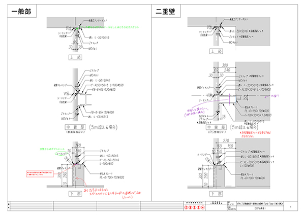 「Torch Tower」の施工図は10人以上でチェックをしています。この際、自分がどの図面データをいつ開いても従来ツールのように読み取り専用になることはなく、BuddyBoardは必ず編集可能であることが保証されているというのが、かなりのストレス低減になるとともに安心感があります。以前は「今誰か開いていますか?」といった具合にチャットなどで都度確認していたので、その作業が不要になったのは大変な進歩です。図面チェック自体はリレーで進んでいくのですが、従来は同時チェックができなかったので相当な時間を要していました。BuddyBoardを使って並行してチェックすることで相応の時間短縮ができています。何万枚という単位で換算したら、すごい効果です。住谷)