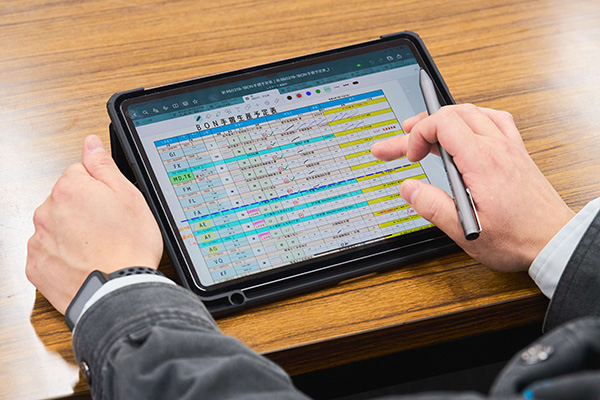 これは児玉工場の例とは違う話になりますが、PCでPDF編集ソフトを利用し、支店の工事部門や設計部門や工場との間で図面や資料の回覧を行う業務が以前弊社にありました。しかし、あるとき現場のユーザーから「前の人が編集を完了するまで次の人が編集できず、待ち時間が発生して煩わしい。これを解決するサービスはありませんか?」という相談を受けました。先の説明のiPadによるPDF編集とよく似た話です。私はその後さまざまなツールを探し、トライアルも実施しましたが、現場の困りごとを解決するツールが見つからず、諦めていたのです。そんな時に建築雑誌でBuddyBoardを見つけ、「これだ!」と思い、すぐに問い合わせをしました。BuddyBoardはリアルタイムで共同編集ができるため、まさに現場の困りごとを解決するツールでした。加えて、iPadで手書きによる書き込みも可能で、直感的で分かりやすい操作性を備えています。そのため、弊社にはITに苦手意識を持つ人もいますが、BuddyBoardは誰でも使いやすいです。PCでもiPadでも使えるというマルチデバイス対応になっているところも、決め手の一つでした。